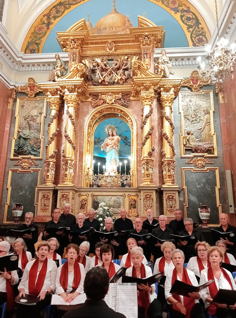 En la celebración de la Eucaristía de la Virgen de Rosario, la cofradía que la tiene como su patrona y la comunidad salesiana encabezada por su párroco D. Santiago, nos invitaron a homenajearla con nuestros cantos.